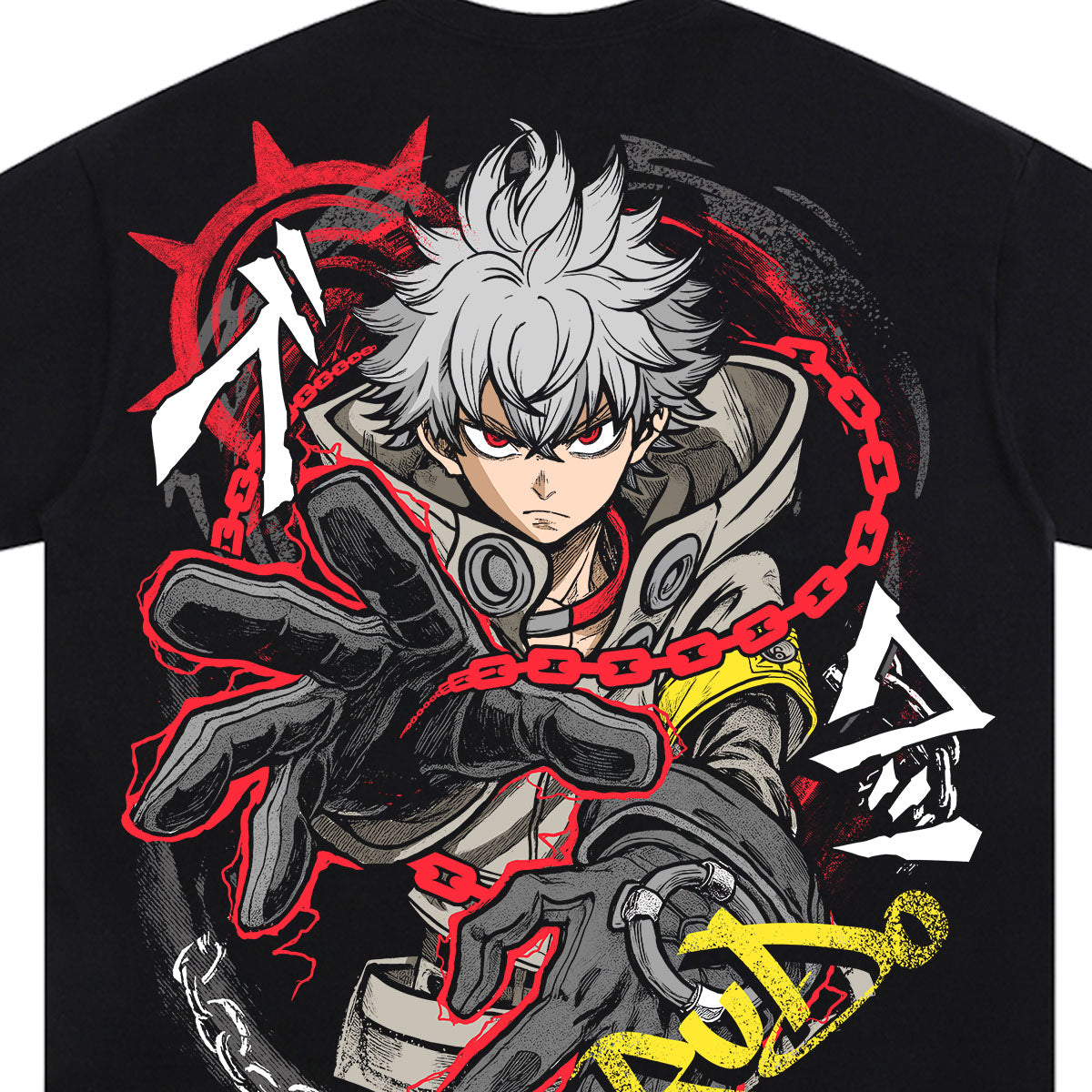 From the Abyss to the Apex. A high-octane tribute to Rudo, the young cleaner with the power to turn trash into treasure. The front of this mineral-washed tee features a striking red "Respirator" graphic—a symbol of survival in the Sphere—while the back erupts with chaotic energy. It showcases Rudo mid-action, his signature chain-link aura swirling around him in a vibrant clash of red, yellow, and white. Set against a premium dark canvas, this design captures the raw, graffiti-inspired art style of Gachiakuta. For those who find value where others see waste and aren't afraid to fight for their place in the world.