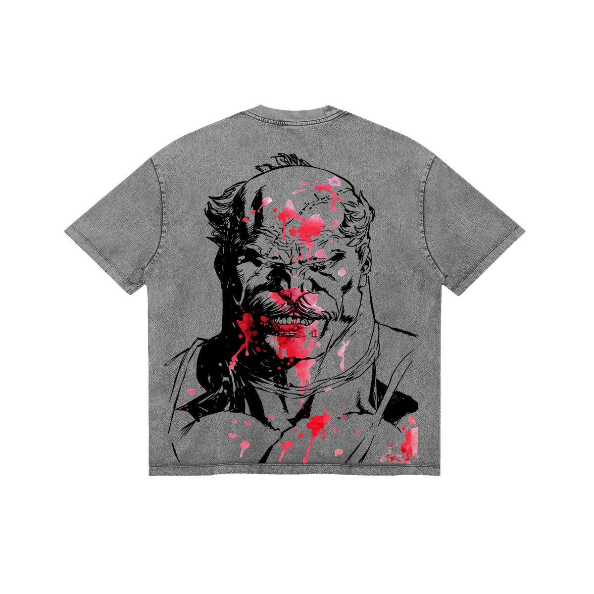 The Price of Conquest. A gritty and visceral tribute to the overwhelming power of Nolan Grayson. The front features the bold, red "INVINCIBLE" typography, while the back reveals a haunting, high-contrast illustration of Omni-Man, splattered with the crimson aftermath of a battle that wasn't even close. Set against a rugged mineral-washed canvas, this design captures the cold, uncompromising nature of a Viltrumite warrior. It’s a statement piece for those who appreciate complex villains and the raw, unfiltered aesthetic of modern graphic novels.